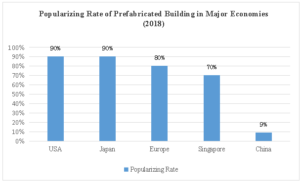 By the end of 2018, China's newly-built area of prefabricated building accounted for less than 9% of all new buildings, remaining far below the average level of developed countries.